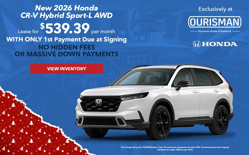 Ourisman Honda of Frederick offers many new, used, and certified pre-owned vehicles. We offer a great suite of services and products to support your purchase. Browsing and test-driving a Honda can be a great experience, and we want you to enjoy this process as much as possible.