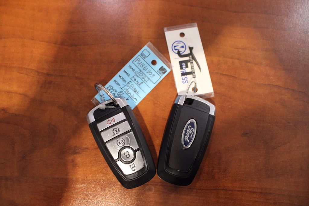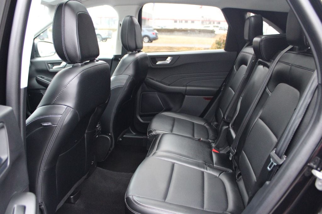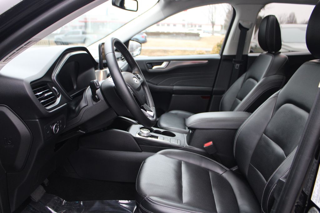 The 2022 Ford Escape Titanium delivers a refined compact SUV experience with a strong mix of upscale comfort, modern tech, and confident performance that suits everyday life and longer drives alike. The exterior presents a sleek and polished profile with LED lighting, a bold grille, premium alloy wheels, and stylish trim elements that give it a sophisticated yet athletic presence on the road. Underneath the hood is a 2.0-liter EcoBoost turbocharged 4-cylinder engine paired with an 8-speed automatic transmission, offering smooth, responsive acceleration and composed performance whether youre navigating city streets or cruising on the highway. The interior of the Titanium trim offers an elevated cabin with leather-trimmed seating, heated front seats, dual-zone automatic climate control, and a spacious, thoughtfully organized cabin that easily accommodates passengers and cargo. Tech-wise it features an advanced infotainment touchscreen featuring Apple CarPlay and Android Auto, Bluetooth connectivity, multiple USB ports that keep you connected and entertained on every journey. Safety and driver-assist technology are well addressed with features like blind-spot monitoring, rear cross-traffic alert, lane-keeping assist, adaptive cruise control, and automatic emergency braking all helping to enhance confidence behind the wheel.