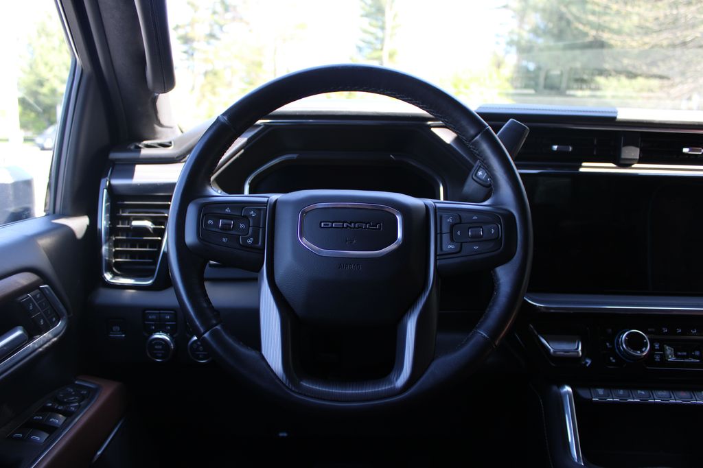 The 2025 GMC Sierra 3500HD Denali Ultimate steps in as a top-tier heavy-duty truck that blends commanding power with premium luxury, making it just as comfortable on the jobsite as it is on long highway drives. Built to handle serious towing and hauling while surrounding you with high-end features, this Sierra delivers a refined yet rugged driving experience that stands out in every category. The exterior features a bold impression with its strong, chiseled body lines and signature GMC styling. Equipped with LED headlights, daytime running lights, and fog lamps, it offers excellent visibility in all conditions. Power retractable running boards add both convenience and a premium touch, while heated power-folding mirrors with integrated turn signals enhance both functionality and safety. A power sunroof adds an open-air feel to the cabin, and practical features like tow hooks and an integrated tailgate step make everyday tasks easier. Sitting on all-terrain tires, this truck is ready for both pavement and off-road adventures, especially with the added capability from the X31 Off-Road Package. Underneath the hood is a 6.6L V8 Duramax Turbo-Diesel engine paired with a 10-speed automatic transmission, delivering exceptional torque and smooth power delivery for heavy-duty performance. The four-wheel-drive system, combined with a locking/limited-slip differential, ensures confident traction across a variety of terrains. Built with heavy-duty components like 4-wheel disc brakes with anti-lock braking and a high-output alternator, this truck is engineered to handle demanding workloads. With the gooseneck/5th wheel prep package and advanced trailering features, its fully equipped for serious towing capability. The cabin welcomes you to a luxurious cabin designed for both comfort and functionality. Premium seating includes heated and ventilated front seats with massage functionality, along with heated rear seats to keep passengers comfortable in any season. The driver benefits from a power-adjustable seat with lumbar support and memory settings, while a heated steering wheel and adjustable pedals add to the tailored driving experience. A head-up display keeps important information in your line of sight, and thoughtful touches like rear defrost, air filtration monitoring, and multiple storage solutions make this interior both refined and practical for everyday use. It is loaded with advanced technology designed to keep you connected and in control. A premium Bose sound system delivers rich audio throughout the cabin, while built-in navigation ensures youre always on the right path. The truck features a WiFi hotspot, Bluetooth connectivity, and telematics for seamless connectivity on the go. Multiple camera views, including an aerial view display system and backup camera, provide enhanced visibility when maneuvering or towing. Additional features like a universal garage door opener and steering wheel-mounted controls add convenience to every drive. Safety is a top priority, with a suite of advanced features designed to protect you and your passengers. This Sierra includes forward collision warning and mitigation, lane departure warning, and automatic high beams to help prevent potential hazards. Cross-traffic alert and rear parking aid provide added confidence in tight spaces, while stability control and traction control systems help maintain control in challenging conditions. A full set of airbags, including front, side, and head airbags, ensures comprehensive protection, making this truck as secure as it is capable.