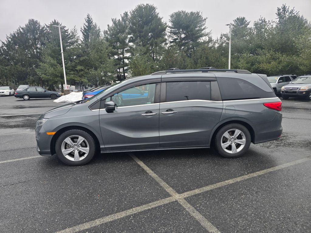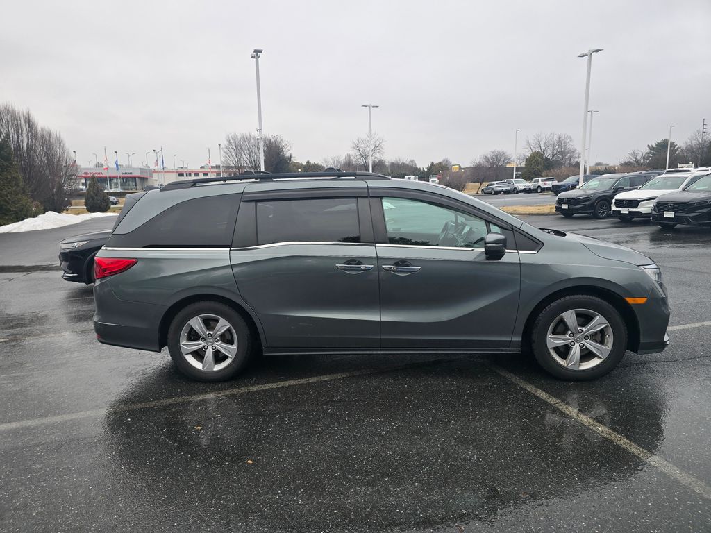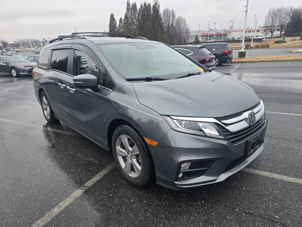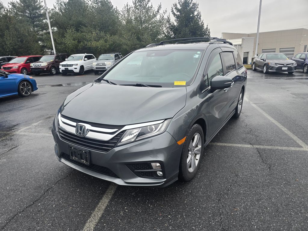 Ourisman Honda of Frederick is pleased to present this 2019 Honda Odyssey EX-L. The 2019 Honda Odyssey EX-L is a family-focused minivan that blends comfort, advanced features, and practicality. Powered by a 3.5L V6 engine producing 280 horsepower and paired with a smooth-shifting 9-speed automatic transmission, the EX-L trim provides strong acceleration and a refined driving experience. The exterior features 18-inch alloy wheels, power sliding doors, and a power tailgate for added convenience. Inside, the EX-L upgrades the cabin with leather-trimmed seats, a power-adjustable front passenger seat, and a driver's seat with memory settings. The second-row seats offer plenty of space and flexibility with the Magic Slide feature, while the third row folds flat to expand cargo capacity. A one-touch power moonroof and a leather-wrapped steering wheel add to the premium feel. Technology includes an 8-inch touchscreen infotainment system with Apple CarPlay, Android Auto, and Bluetooth, alongside a rearview camera and multi-zone climate control. For safety, the EX-L comes equipped with the Honda Sensing suite, which includes lane-keeping assist, adaptive cruise control, forward collision warning, and automatic emergency braking. Additionally, the EX-L adds a rear-seat entertainment system and an integrated navigation system for long trips, making it an ideal choice for families seeking comfort and advanced features.