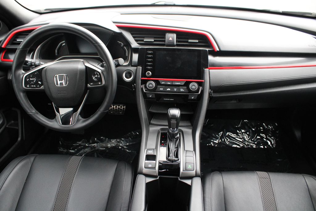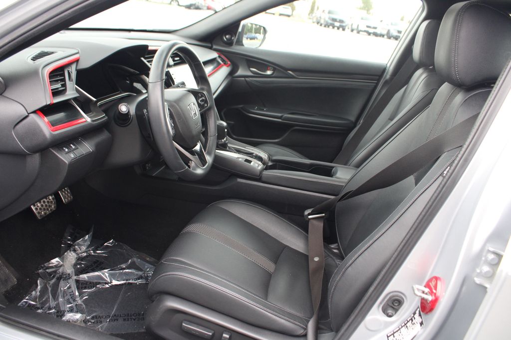 Ourisman Honda of Frederick is pleased to present this 2021 Honda Civic Sport Touring hatchback. The 2021 Honda Civic Hatchback Sport Touring with a manual transmission offers a blend of sportiness, practicality, and advanced features, making it the top-tier trim in the Civic Hatchback lineup. It comes equipped with a turbocharged 1.5-liter 4-cylinder engine that produces 180 horsepower, paired with a 6-speed manual transmission for an engaging driving experience. The exterior features 18-inch alloy wheels, LED headlights, and a dual exhaust system, giving it a bold and aggressive stance. Inside, the Sport Touring trim includes leather-trimmed seating, heated front and rear seats, and a power-adjustable driver's seat. A 7-inch touchscreen display with integrated navigation, Apple CarPlay, Android Auto, and a 12-speaker premium audio system offers advanced infotainment options. Standard driver-assistance features include Honda Sensing technologies such as adaptive cruise control, lane-keeping assist, and collision mitigation braking. Additional conveniences like dual-zone automatic climate control, a wireless phone charger, make the Civic Hatchback Sport Touring both high-tech and user-friendly, offering a well-rounded driving experience.