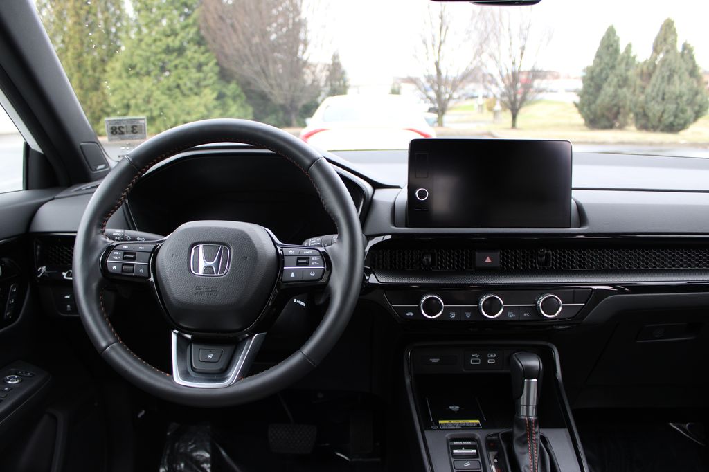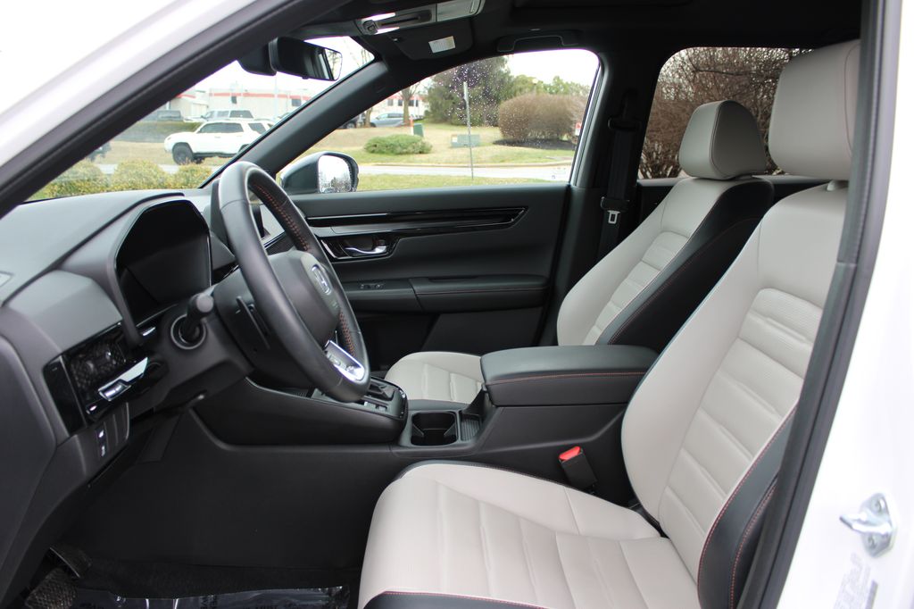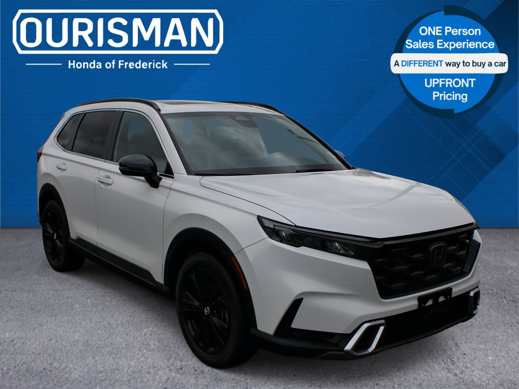 Ourisman Honda of Frederick is pleased to present this 2023 Honda CR-V Hybrid Sport Touring. The 2023 Honda CR-V Hybrid Sport Touring is the pinnacle of the CR-V lineup, combining top-tier performance, luxury, and advanced technology. Powered by a refined 2.0L 4-cylinder engine paired with two electric motors, it delivers a total of 204 horsepower and features standard all-wheel drive for enhanced traction and control. The exterior boasts exclusive 19-inch black alloy wheels, LED headlights, a hands-free power tailgate, roof rails, and a panoramic moonroof. Inside, the Sport Touring trim offers a luxurious cabin with leather-trimmed seats, a 12-speaker Bose premium audio system, and a wireless charging pad. Advanced technology includes a 9-inch touchscreen with wireless Apple CarPlay and Android Auto, integrated navigation, and a head-up display. Safety and driver-assist features are comprehensive, with the Honda Sensing suite providing adaptive cruise control, lane-keeping assist, blind-spot monitoring, and traffic sign recognition. Unique sport styling accents and a spacious, refined interior make the 2023 CR-V Hybrid Sport Touring a standout choice for those seeking eco-friendly performance with high-end amenities.