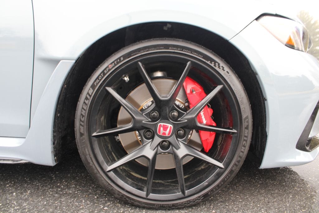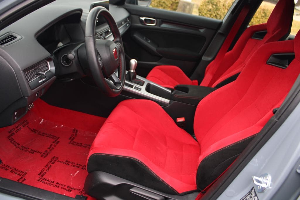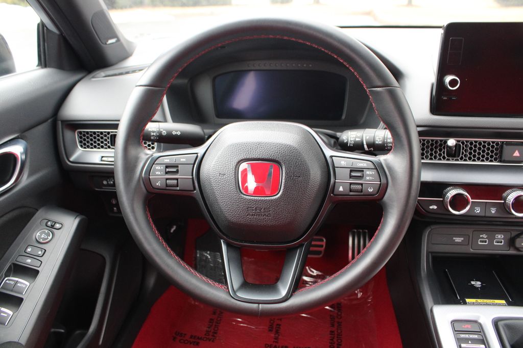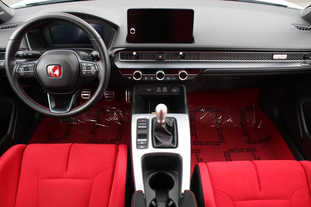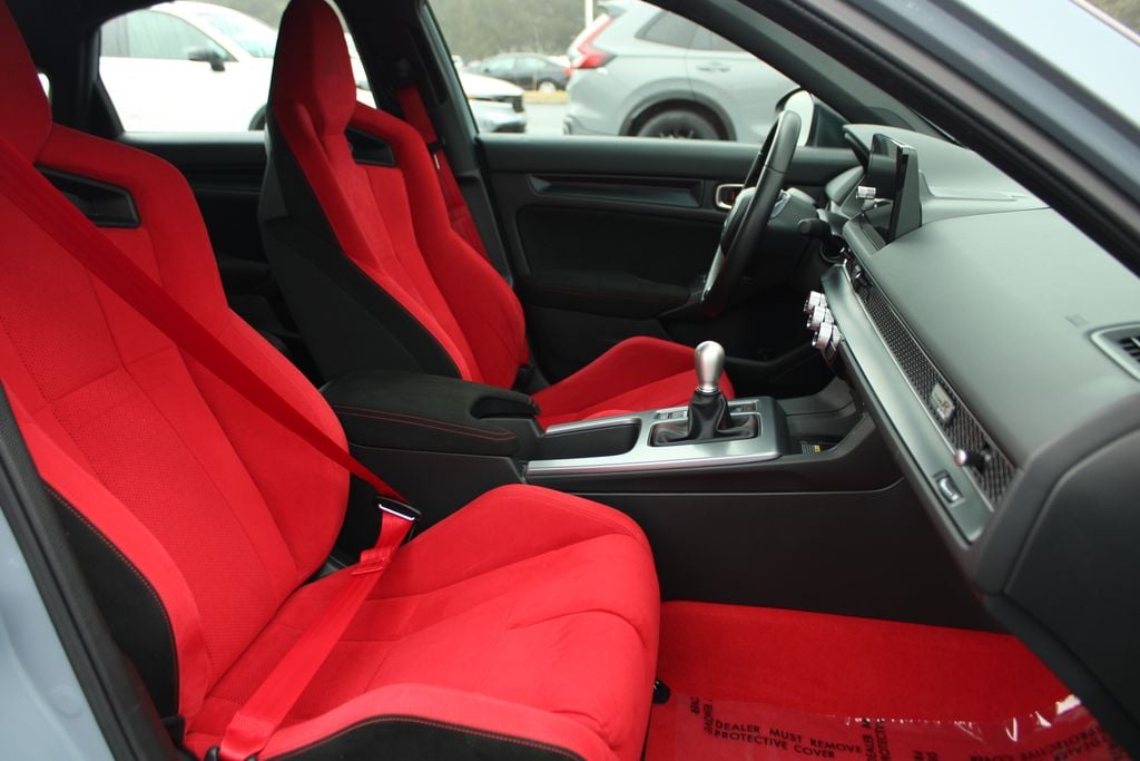 The 2023 Honda Civic Type R Base is the enthusiast-focused hot hatch that brings race-inspired performance and sharp handling to a practical everyday package. The exterior Underneath the hood is powered by a 2.0-liter turbocharged 4-cylinder engine paired with a close-ratio 6-speed manual transmission, delivering exhilarating acceleration and engaging throttle response that enthusiasts crave, while the sport-tuned suspension and front-wheel-drive performance setup make every drive feel energetic and connected. The interior focuses on driver engagement with deeply bolstered sport seats, a leather-wrapped steering wheel with race-inspired accents, aluminum-trimmed pedals, and a driver-centric cockpit that keeps everything within easy reach. Tech-wise it features a large touchscreen infotainment system with Apple CarPlay and Android Auto, Bluetooth connectivity, USB