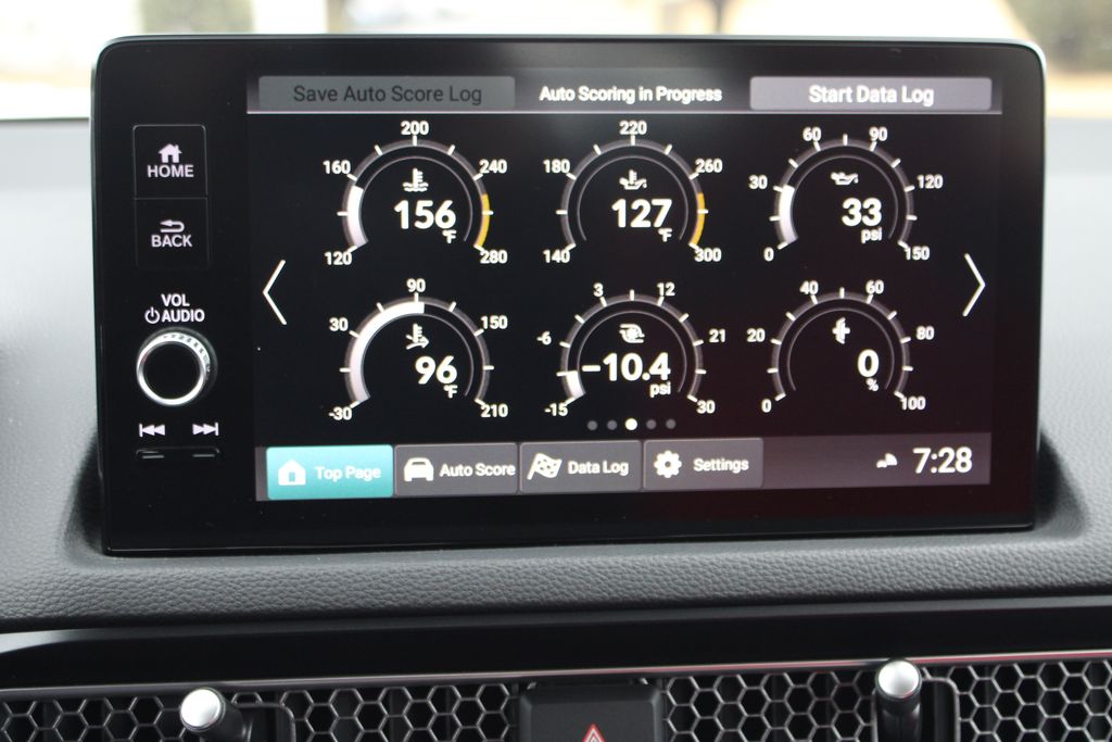 ports, and a customizable digital cluster that lets you monitor performance metrics like G-force and lap timing. Safety and driver-assist systems include adaptive cruise control, lane-keeping assist, collision mitigation braking, road-departure mitigation, blind-spot monitoring, and rear cross-traffic alert blending performance with peace of mind.
