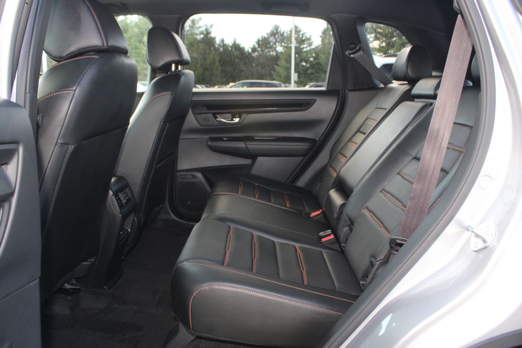 The 2024 Honda CR-V Hybrid Sport-L brings together sleek styling, hybrid efficiency, and a premium interior for a balanced driving experience. The exterior is highlighted by a bold blacked-out grille, LED headlights and taillights, 18-inch Berlina Black alloy wheels, and sporty design accents that set it apart from the standard CR-V. Power comes from a 2.0L Atkinson-cycle 4-cylinder engine paired with two electric motors, producing 204 horsepower on a AWD drivetrain for smooth acceleration and impressive fuel efficiency. The cabin is refined with leather-trimmed seating, heated front seats, a power-adjustable driver's seat with memory, and a spacious rear seating area. Technology is modern and intuitive, featuring a 9-inch touchscreen with wireless Apple CarPlay/Android Auto, a 320-watt 8-speaker audio system, and wireless phone charging. Safety and driver assistance are well-covered with Honda Sensing, which includes adaptive cruise control, lane-keeping assist, blind-spot monitoring, and collision mitigation braking. For those who want an efficient hybrid SUV that blends sporty style with premium comfort and advanced tech, the 2024 Honda CR-V Hybrid Sport-L delivers a confident and well-rounded package.