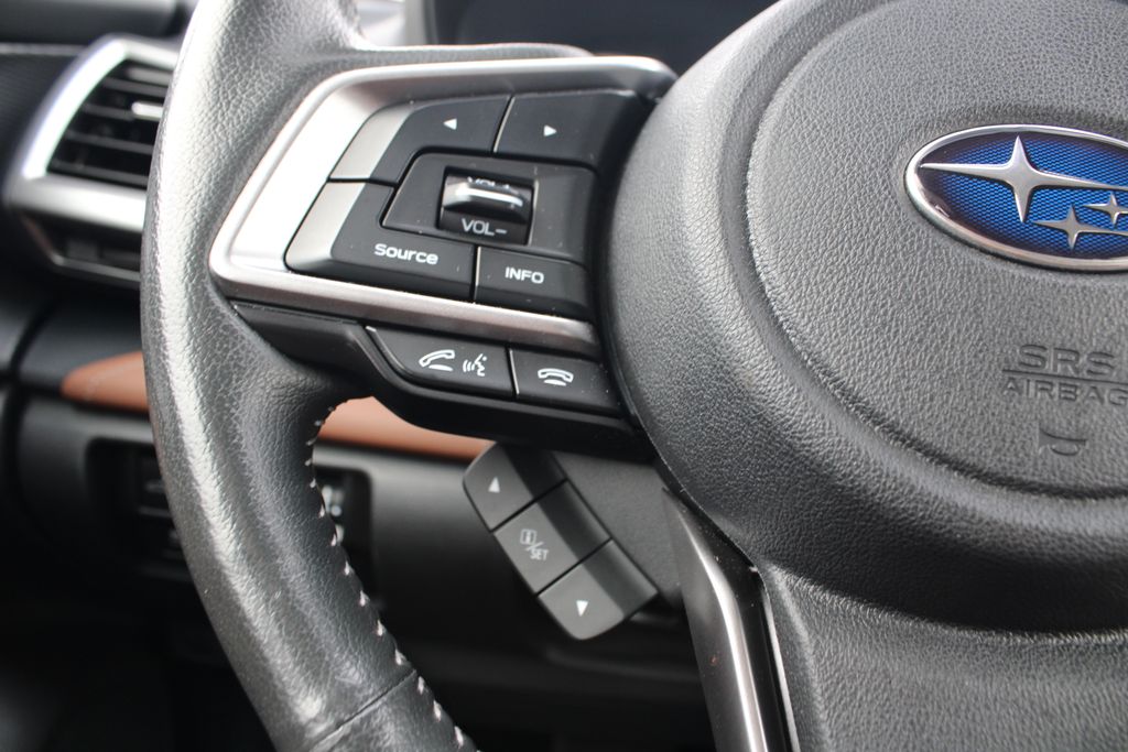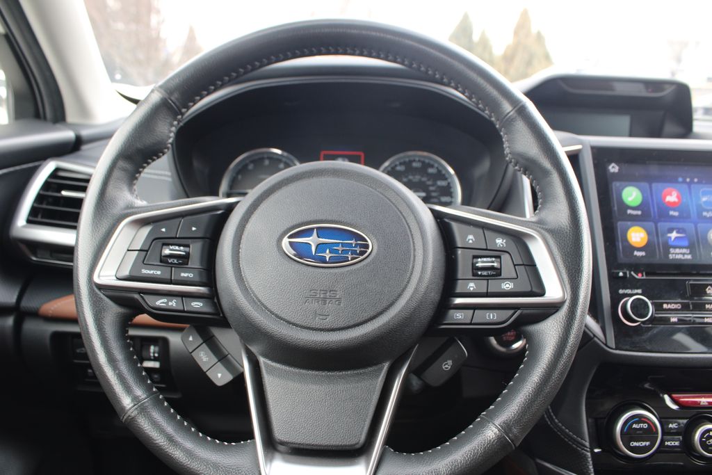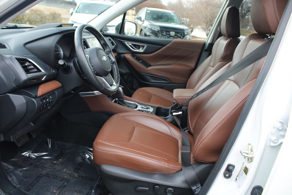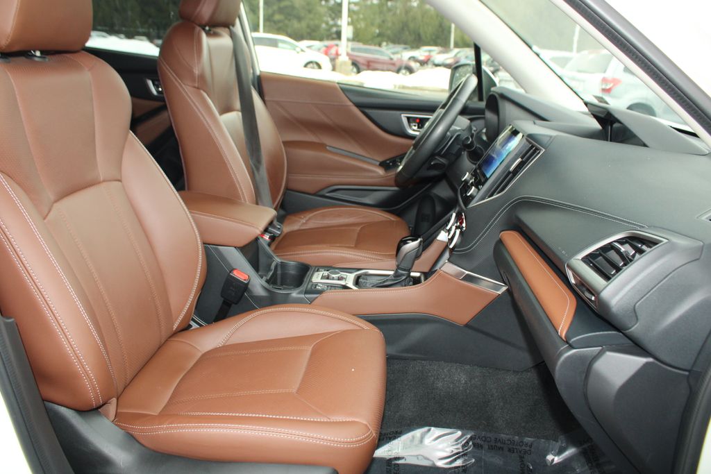 The 2021 Subaru Forester Touring blends rugged capability, refined comfort, and modern technology into a compact SUV thats ready for both daily life and adventure. The exterior presents a purposeful and confident stance with LED steering responsive headlights, fog lights, a smart roof rack system, body-colored trim, and stylish alloy wheels giving it a look thats equally at home on city streets or scenic trails. Underneath the hood is a 2.5-liter horizontally opposed (BOXER) 4-cylinder engine paired with a Lineartronic continuously variable transmission (CVT) and standard Symmetrical All-Wheel Drive, offering smooth, balanced performance and confident traction in varied road and weather conditions. The cabin of the touring trim elevates the experience with leather-trimmed heated seats, a power-adjustable drivers seat with memory, dual-zone automatic climate control, and thoughtful cabin touches that make every ride comfortable for driver and passengers alike. Tech is well addressed with a responsive touchscreen infotainment system featuring Apple CarPlay and Android Auto, Bluetooth connectivity, multiple USB-C ports, and an available premium audio system keeping you connected and entertained on every journey. On the safety front, Subarus EyeSight Driver Assist Technology enhances confidence with features like adaptive cruise control, lane-keep assist, pre-collision braking, and more, helping support peace of mind behind the wheel.