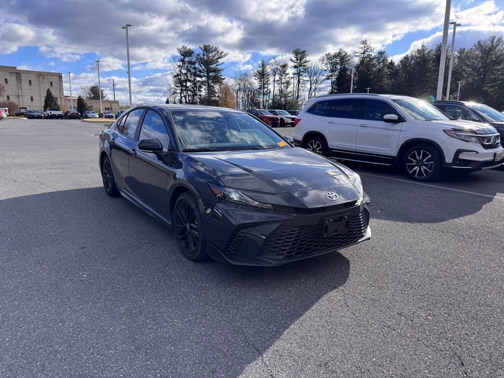 The 2025 Toyota Camry SE delivers a sporty-leaning midsize sedan experience that balances everyday practicality with a touch of flair. The exterior features black sport-mesh grille, 18-inch alloy wheels, and sculpted body lines that hint at performance without being over the top. Under the hood, it’s powered by a 2.5-liter inline-4 hybrid powertrain, delivering a combined output of 225 horsepower giving you a responsive and modern driving feel. The cabin mixes comfort and function, offering SofTex®-trimmed sport seats, an 8-way power-adjustable driver’s seat, dual-zone automatic climate control, and a clean, intuitive layout that makes daily driving easy. Tech is well covered with a modern infotainment display, standard smartphone integration (Apple CarPlay® / Android Auto™), USB-C ports, and a well-designed multimedia setup. On the safety front, the SE comes equipped with Toyota’s Safety Sense suite — including forward-collision warning, lane-departure alert, automatic high beams, and other driver-assist features giving peace of mind on commutes and road trips alike.