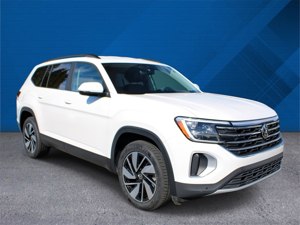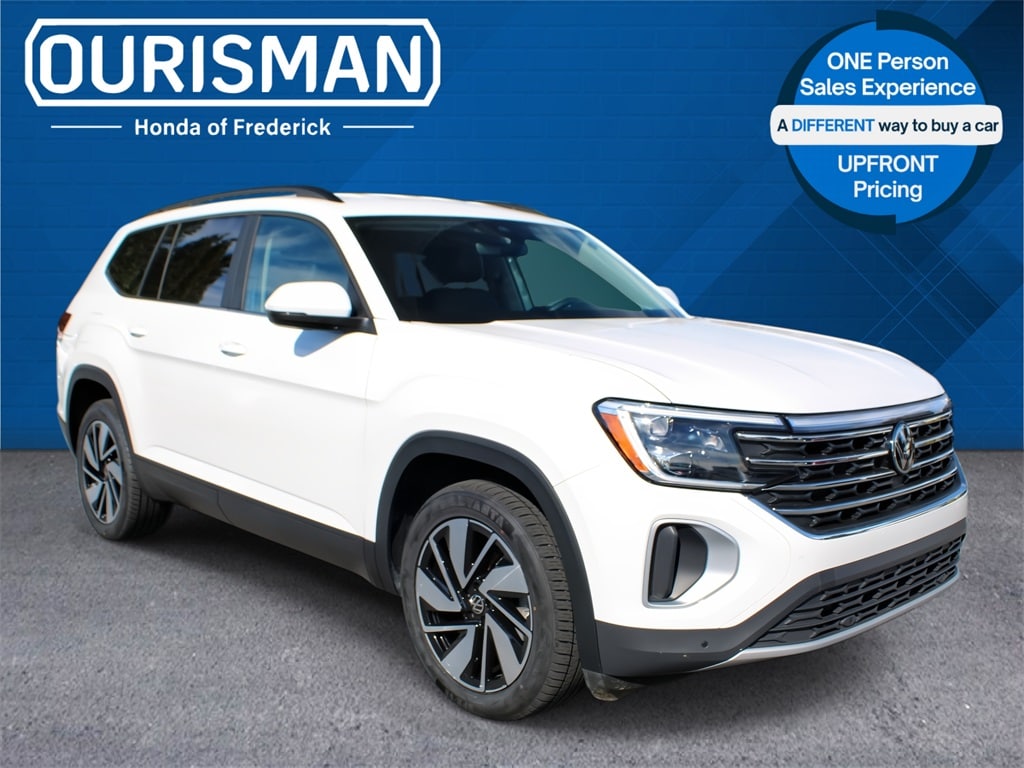 Ourisman Honda of Frederick is proud to present the 2024 Volkswagen Atlas 2.0T SE w/Technology The 2024 Volkswagen Atlas 2.0T SE w/Technology delivers a versatile mix of size, comfort, and modern features for families on the go. The exterior has a bold, refreshed design with a wide front grille, LED headlights, 20-inch alloy wheels, and roof rails that add to its utility-focused look. Powering this three-row SUV is a 2.0-liter turbocharged 4-cylinder engine on a AWD drivetrain producing 269 horsepower and 273 lb-ft of torque, paired with an 8-speed automatic transmission for smooth and confident driving. The cabin features a spacious and refined look with leatherette seating, heated front seats, a power-adjustable driver’s seat, tri-zone climate control, and plenty of cargo flexibility. Technology is a strong point here, featuring a 12-inch touchscreen with wireless Apple CarPlay® and Android Auto™, a wireless charging pad, multiple USB-C ports, and a premium audio system. Safety and convenience come standard with adaptive cruise control, lane-keeping assist, blind-spot monitoring, and front and rear parking sensors. For families who want generous space, modern tech, and everyday practicality wrapped in a stylish package, the 2024 Volkswagen Atlas 2.0T SE w/Technology is a smart pick.